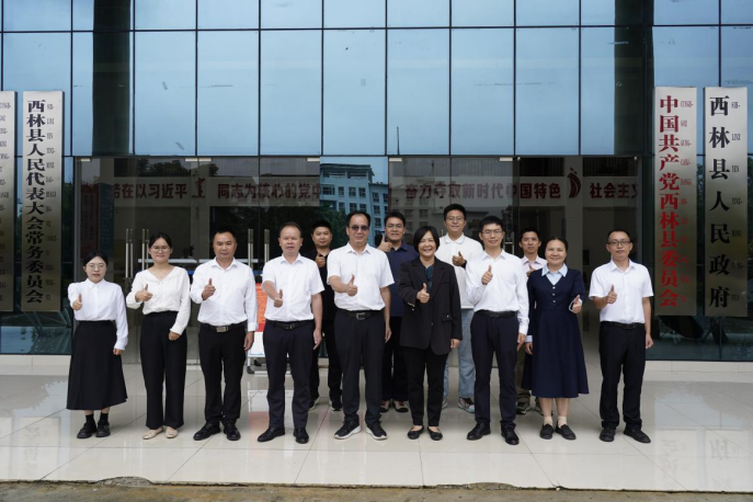为贯彻学校党委关于选调生工作的决策部署,落实“扶上马,送一程,关怀一辈子”的指示精神,深化乡村振兴与民族团结工作,9月30日,学院党委联合校学工部、校友办赴百色市西林县开展选调生走访调研工作。学院党委书记卢婵江、副书记黄路明、副院长陈宏波、校友办副主任黄庶冰、学工部代表王天亮以及我院辅导员等一行7人一同前往走访慰问。西林县委常委、组织部部长、党校校长谌宏明,县委组织部副部长、公务员局局长李富银,以及在西林县服务的广西大学选调生代表等9人参加座谈交流。