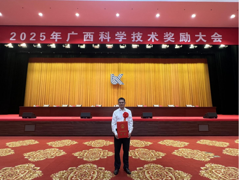 2025年7月4日,广西科学技术奖励大会在南宁召开,大会公布2024年度广西科学技术奖获奖榜单,并为获奖者颁奖。我院获2024年度广西科学技术奖3项,其中贺德强教授荣获科学技术进步奖一等奖(第一完成单位),蒙艳玫教授荣获科学技术进步奖二等奖(第一完成单位),黄豪中教授荣获科学技术进步奖一等奖(第二完成单位)。