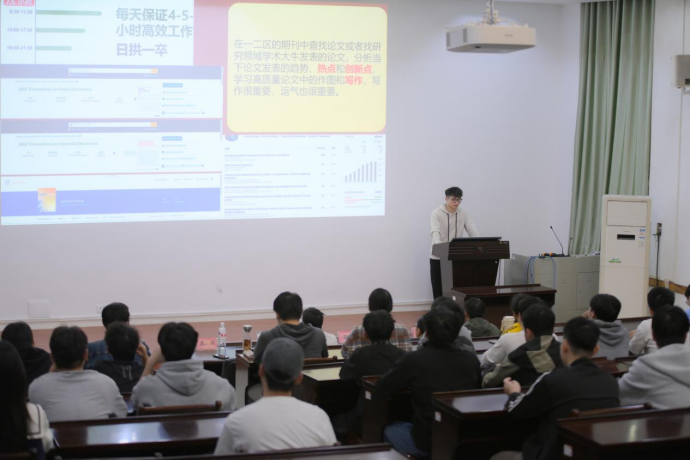吴金鑫同学结合其产出的丰富学术成果,强调科研工具的充分运用以及成果积累的重要性,为研究生们深耕科研提供全面且实用的经验借鉴;柏代鑫同学针对机械专业硕士的,结合学校往届情况给出求职择业的实用规划建议,助力研究生明确就业方向,提升求职竞争力;龚玉滨同学鼓励大家在专注科研的同时,通过加强运动等爱好调节身心,实现全面发展。
